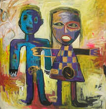 Multi-talented artist Michael Adenubi lives in Lagos, Nigerian. After majoring in Painting at Adeniran College of Education in Lagos, he trained under artists such as Akinola Ebenezer and Dr. Abiodun Kafaru.Adenubi’s inspiration comes from events and activities around him. He is known for his ability to create vivid narratives and skillfully convey emotions through his paintings. His work draws you in and pushes you to wonder and question what his protagonists might be feeling.“Art is never a thing, but a way